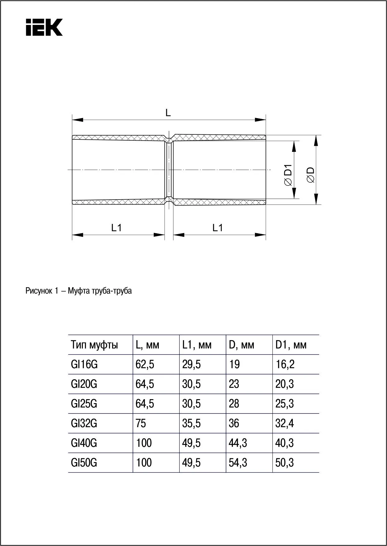 | Тип изделия | Патрубок-муфта с ограничителем |