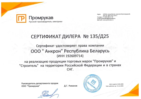 Наличие лицензий и сертификатов гарантирует безопасность, надёжность и соответствие продукции стандартам качества. Это подтверждает статус «Анкрон» как одного из самых популярных и авторитетных дистрибьюторов в сфере электротехники в Беларуси.
