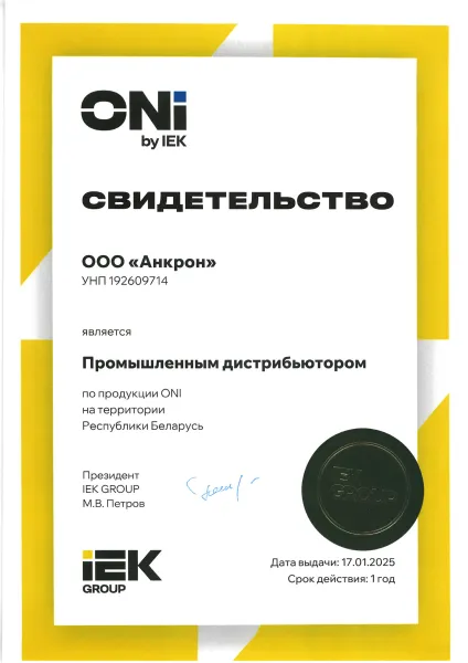 Наша продукция сертифицирована и соответствует действующим техническим регламентам. На сайте представлены официальные сертификаты соответствия, а также документы от производителей, подтверждающие, что «Анкрон» — официальный представитель более 70 брендов, включая IEK, EKF, Schneider Electric, Werkel, REXANT, JazzWay, Wolta, GreenEl и другие.