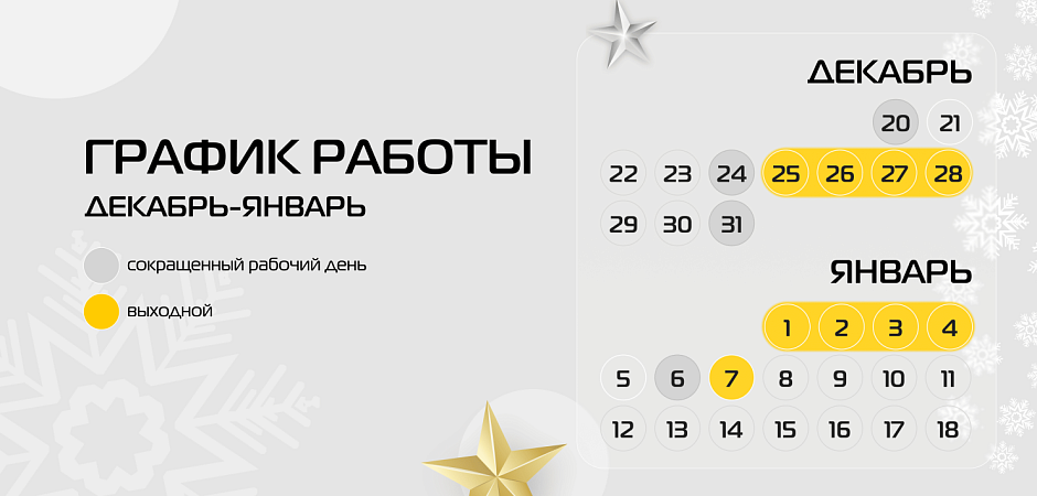 В преддверии праздничных дней информируем об изменениях в графике работы нашей компании. Пожалуйста, учитывайте их при планировании заказов.