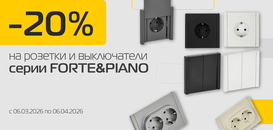 Не упустите возможность приобрести розетки и выключатели IEK FORTE & PIANO со скидкой 20%!