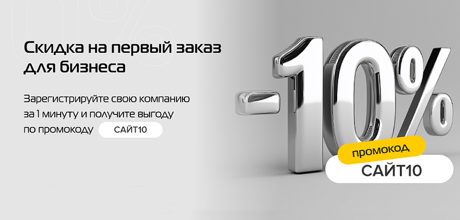 Зарегистрируйте свою компанию на нашем сайте, дождитесь модерации личного кабинета, чтобы получить не только оптовые цены, но и дополнительную скидку на первый заказ по промокоду "САЙТ10"! Подробнее про личный кабинет для B2B.